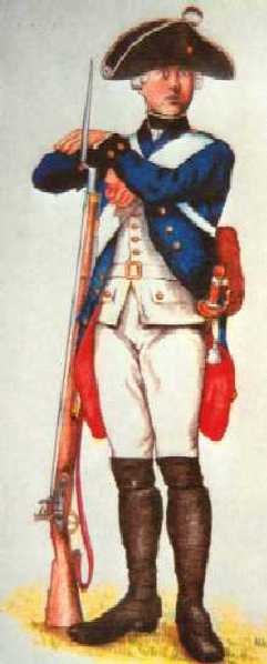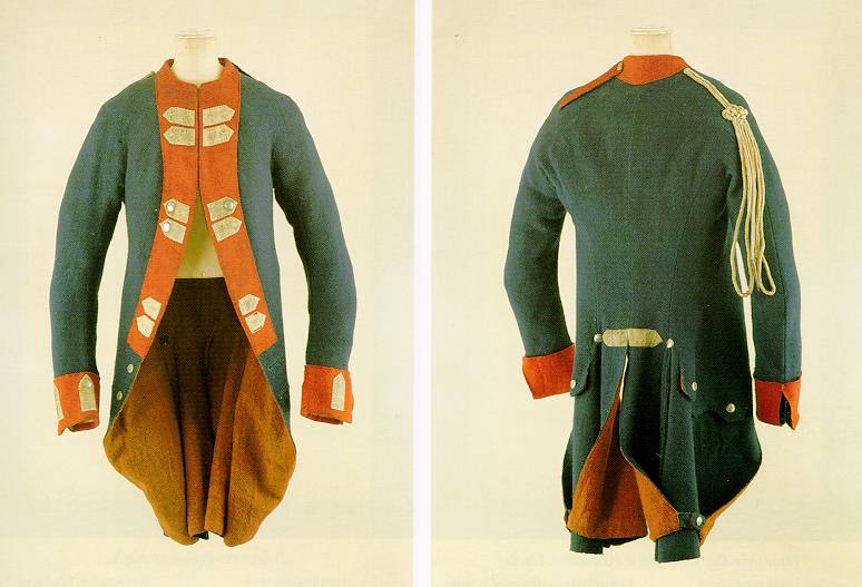 Uniform illustration by Beyer-Pegau. Uniform was worn by the 4 regular companies on the unit. The Batl. was also known as Combined Batl., or as Jaeger-Batl. The unit was the elite unit of the Brunswick Corps. The lower picture shows a Prussian coat. The style was the same as in the Brunswick Army of the army of Hessen-Kassel.