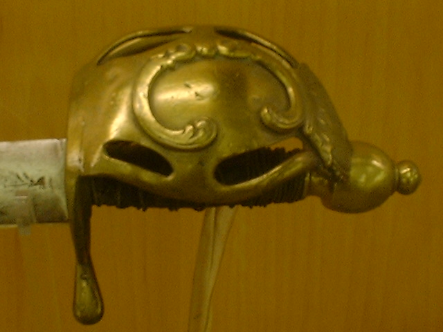Sword:The heavy cavalry sword had a straight blade and was patterned after the Prussian Model. The only difference was the monogram on the hilt. The Prussian Model had the Prussian Eagle and the Kings monogram. The Brunswick model used the doppel "C" for Dule Carl. The Hessian Model had the Hessian Lion on the hilt, but otherwise was very similar. Officers sword were generally lighter than the regular sword.