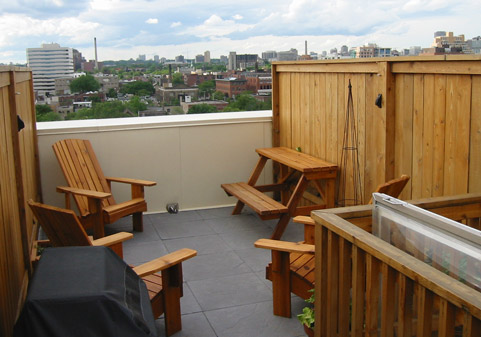 UP ON THE ROOF: The narrow deck includes a half-size picnic table, reached by a sunny skylight door. | ||